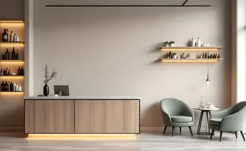 Nie musisz mieć dużych pieniędzy, żeby stworzyć efektowną recepcję. Przy ograniczonym budżecie stawiaj na prosty, mocny projekt: jednobarwna lada z trwałego laminatu, dyskretne logo na ścianie i ergonomiczne meble second-hand odmalowane w firmowym kolorze. To szybkie i tanie rozwiązanie, które wygląda schludnie. Przy większych środkach inwestuj w niestandardowe blaty z konglomeratu, podświetlenie LED oraz meble na wymiar. Warto też pomyśleć o rozwiązaniach modułowych — pozwalają rozbudować recepcję w przyszłości bez wymiany wszystkiego. W praktyce spotkałem właścicieli, którzy zainwestowali w dobrze zaprojektowaną ladę na start i w ciągu roku odzyskali koszty dzięki wzrostowi sprzedaży kosmetyków i większej liczbie powrotów klientów. Dobre projektowanie to inwestycja.